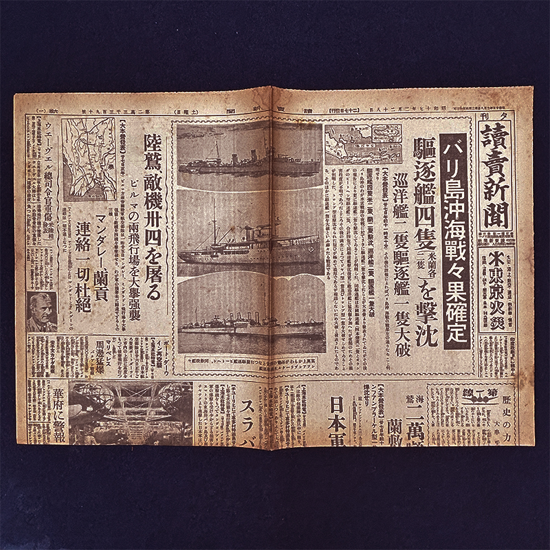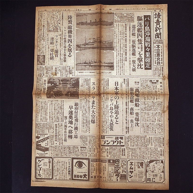 S0088 戦前 昭和17年2月28日 読売新聞 夕刊 大東亜戦争 大日本帝国 陸軍 海軍 バリ島沖海戦戦果確定 駆逐艦四隻を撃沈 收藏