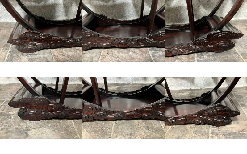 主に中国の文化で見られる、互い違いに配置された段が特徴の飾り棚です。