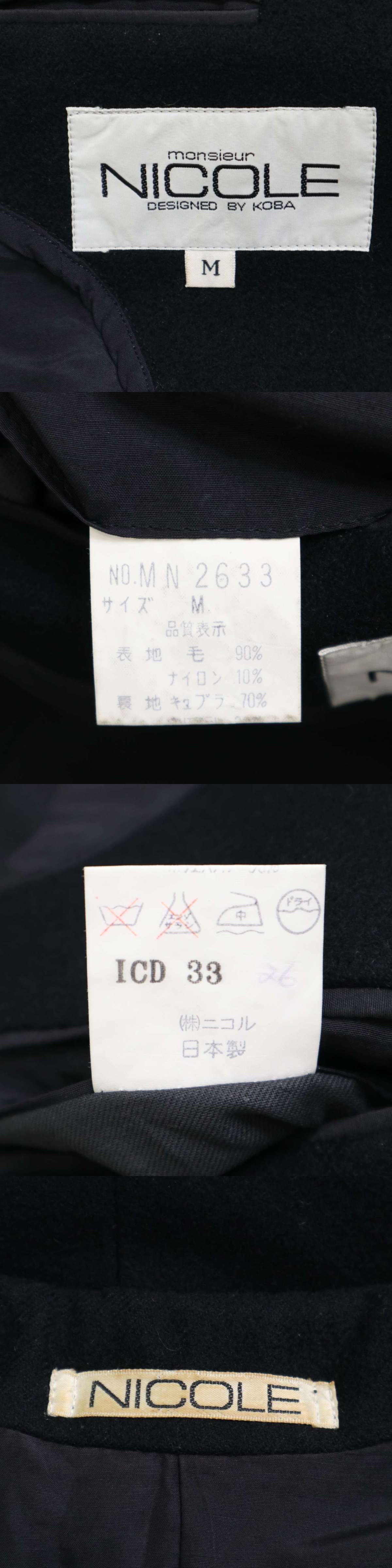 希少 初期★ MONSIEUR NICOLE ムッシュ ニコル ユキオコバヤシ 秋冬 ウール テーラード ジャケット Sz.M メンズ 黒 收藏