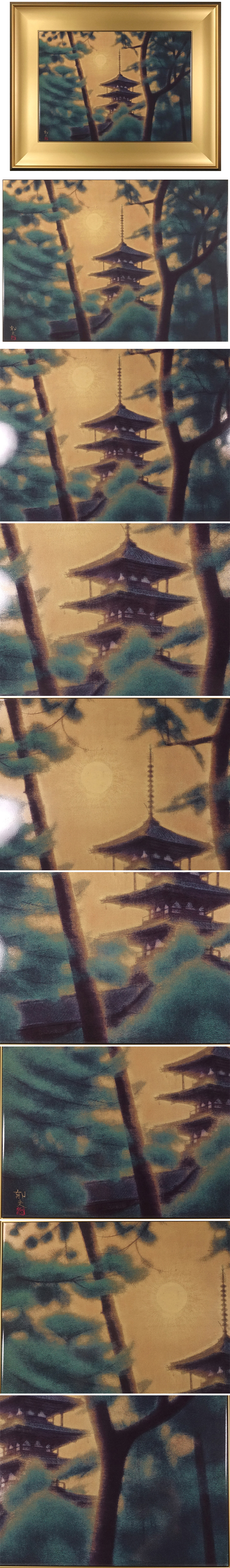 ∇花∇文化勲章受章作家【平山郁夫】作 2001年限定陶板画「法隆寺」 限定250点 画面36×50cmの大陶板 共シール 收藏