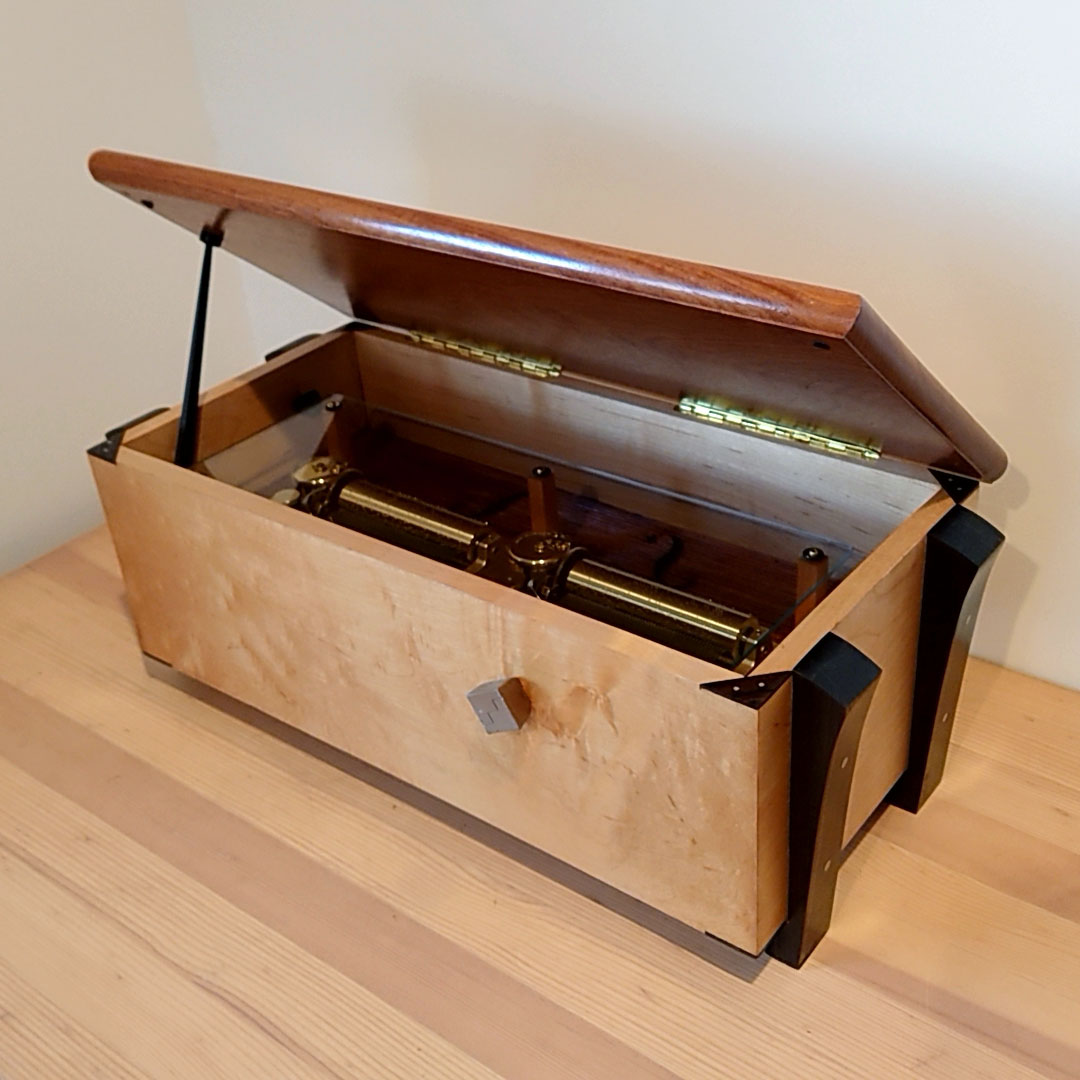 銘木無垢材を使用したオルゴールや時計を制作する木工房「工房みち」が、SANKYO オルフェウスの上位モデル「Concerto100」 の「ラ・カンパネラ」 を組み込み制作したオルゴールです。