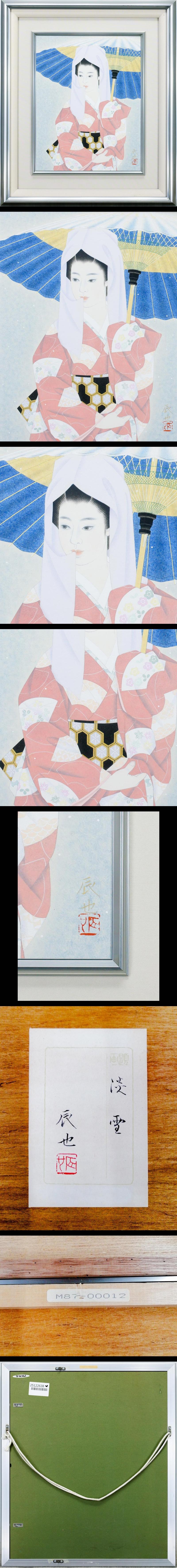 【真作】【WISH】西田辰也「淡雪」日本画 6号 共シール 一枚の絵取扱 ◆和傘を手に佇む雪の和美人 〇師:志村立美 雑誌挿絵 #25122638 收藏