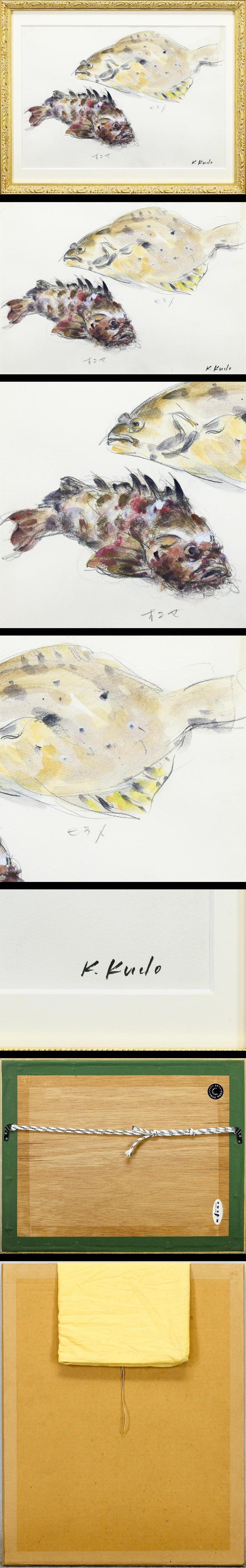 【真作】【WISH】工藤和男「ヒラメ オコゼ」水彩 約6号 ◆筆致に残る魚の息 〇創元会会長 日展評議員 漁村の群像を描く #25122800 收藏