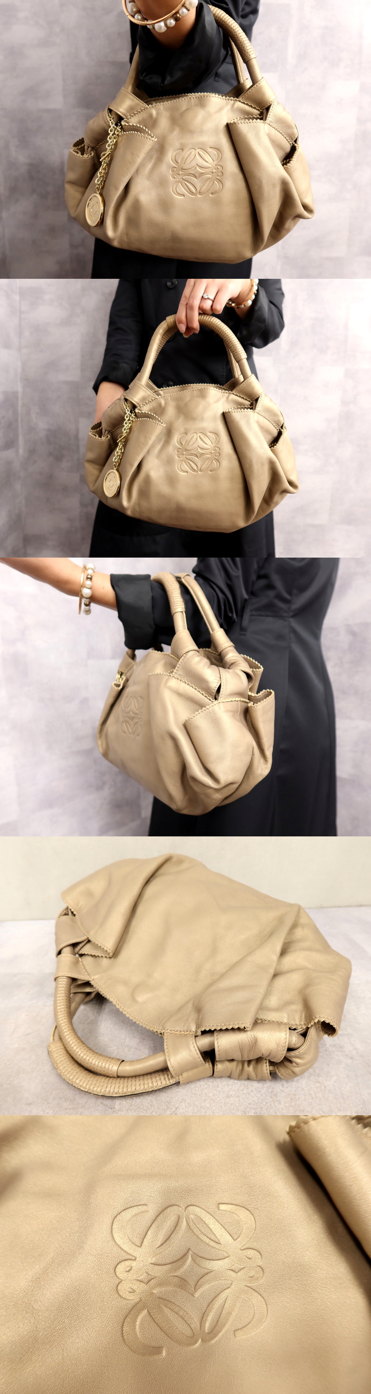 ●超美品●LOEWE ロエベ●アイレ ミストラル●アナグラム●ロゴ型押し●ナッパ レザー 本革●ハンド バッグ●ゴールド●G金具●Js63873 收藏
