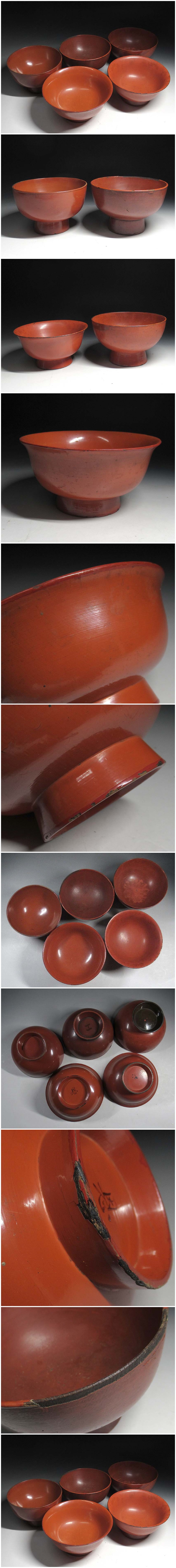 緑屋s■ 時代物 根来塗 高台椀 5点 朱塗 漆書銘 仏教美術 i9/12-6465/22-3#80 收藏