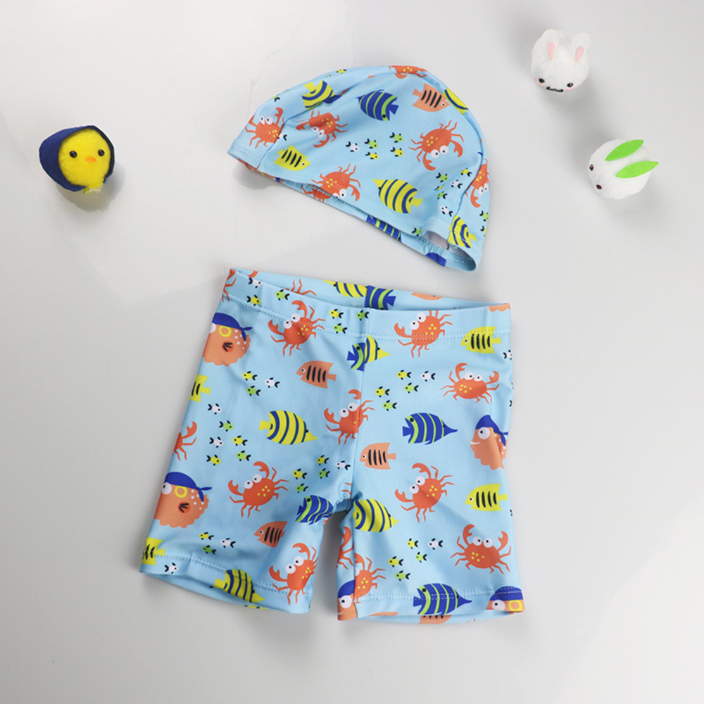 ☆ カニ×ライトブルー ☆ 95-105cm ☆ キッズ 男の子 スイムパンツ yswim5058 ベビー 水着 男の子 キャップつき 2点セット スイムパンツ 收藏