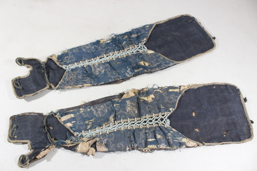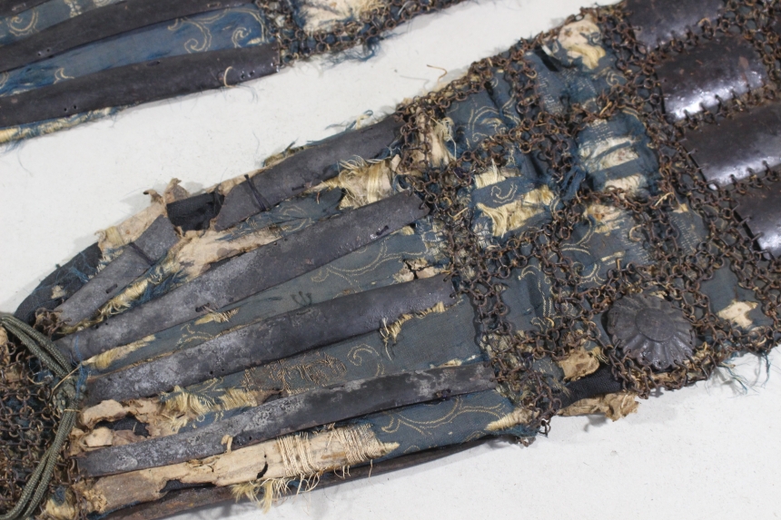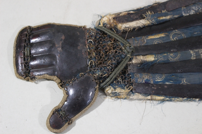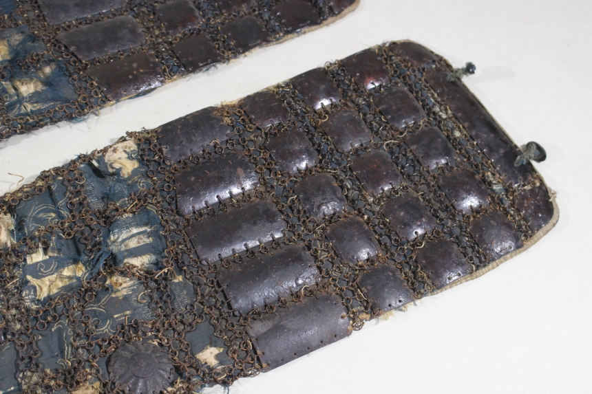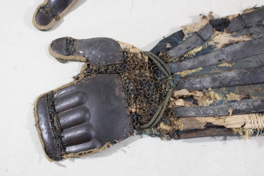 鉄黒漆塗三具 江戸 鉄、黒漆 籠手68×19cm 佩楯50×54cm 脛当30×30cm 1.8㎏ 甲冑/武具 收藏