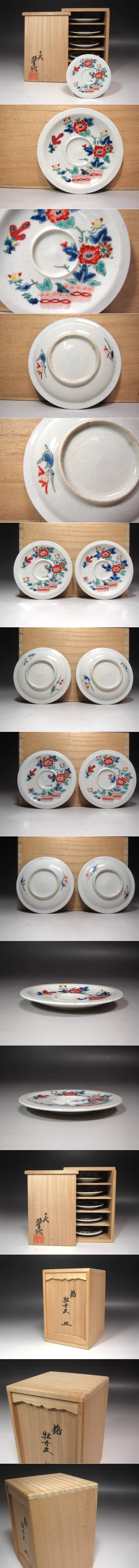★ 13代柿右衛門 錦牡丹絵皿 五客★x617