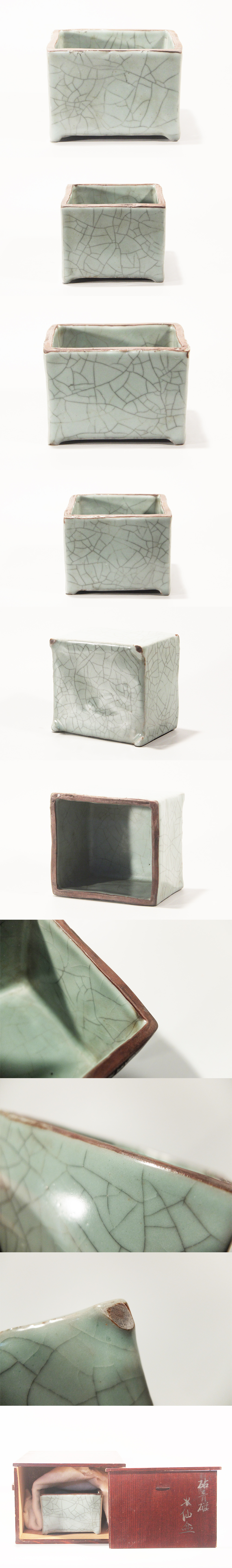 | 商品説明 | 青磁 水仙盆です。 欠損修復無し、 詳細は写真をご参照ください。 <サイズ> 縦 : 約12.8cm 横 : 約11.2cm 高さ: 約8.6cm <付属> 木箱 ※詳細は写真を見て、ご納得の上ご入札願います。 ご不明な点はお気軽にご質問ください。 ※ノークレーム・ノーリターンでお願いします。 ※サイズの若干の誤差はご了承ください。 |