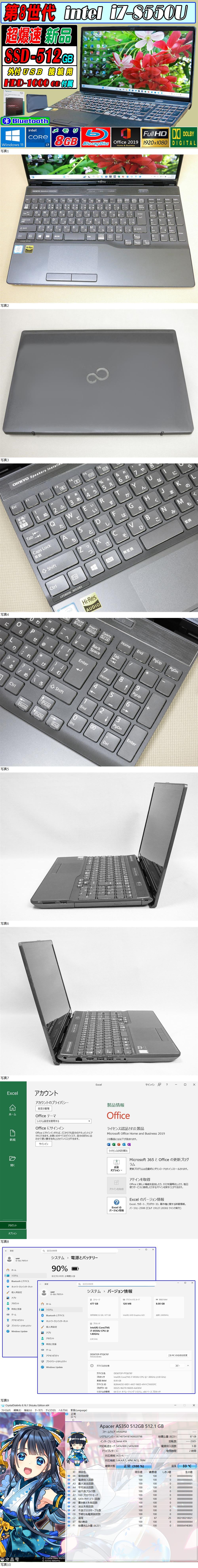[☆FHD液晶☆第8世代Corei7-8550U【爆速新品SSD512G+HDD1000G】最新Win11]AH53/B3B,メモリ8G,Blu-ray,Webカメラ,Wi-Fi,office2019H&B,USB3