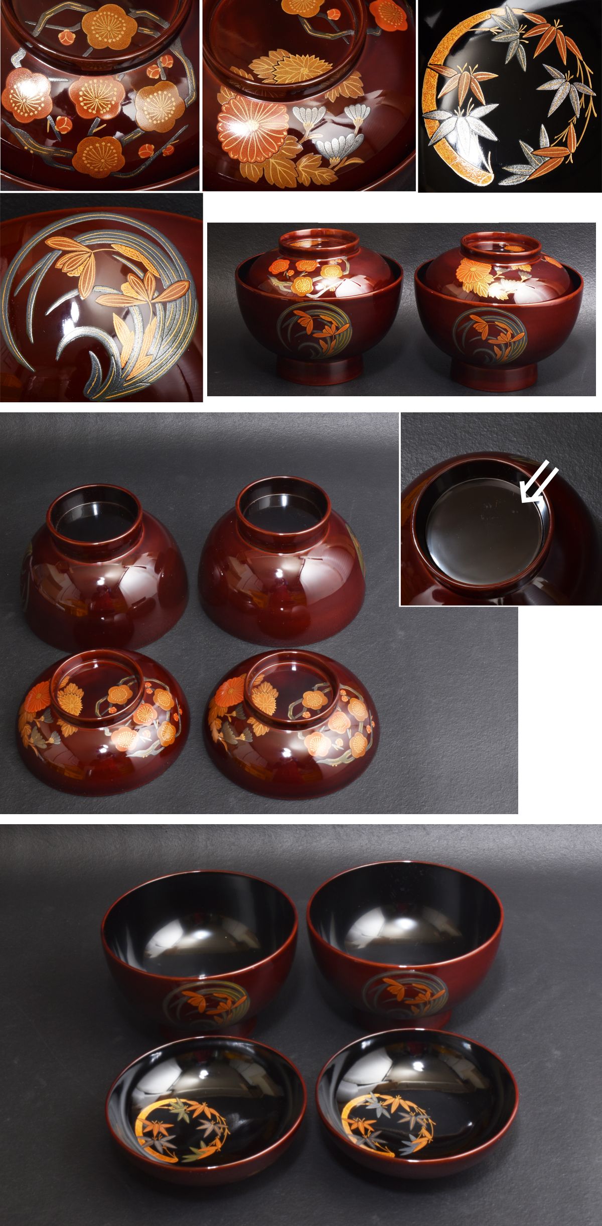 6305 四君子文蒔絵 椀 2客 本漆 木製 漆器 收藏