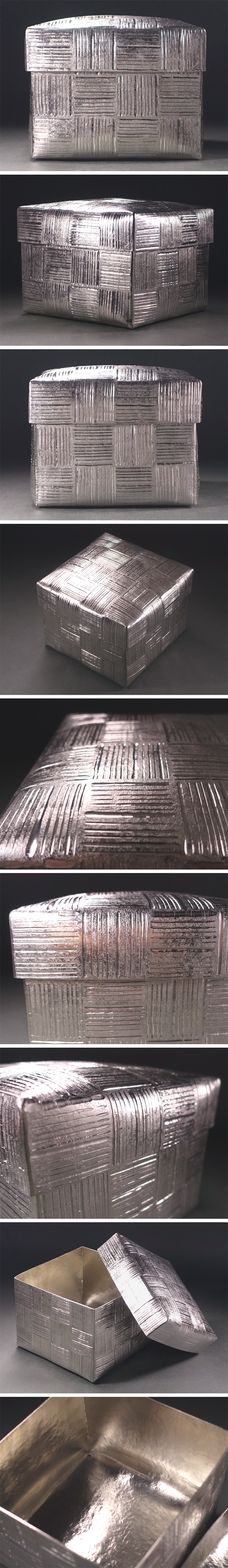 ∇花∇金属造形家【関根正文】作 銀錫線彫りの箱 共箱付 唯一無二の金属アート 收藏