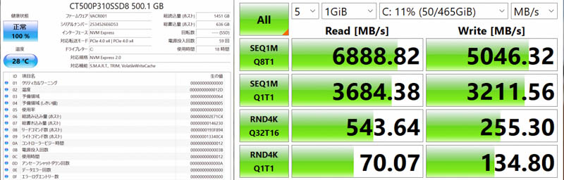速度 SeqRead:6889MB/s SeqWrite:5046MB/s