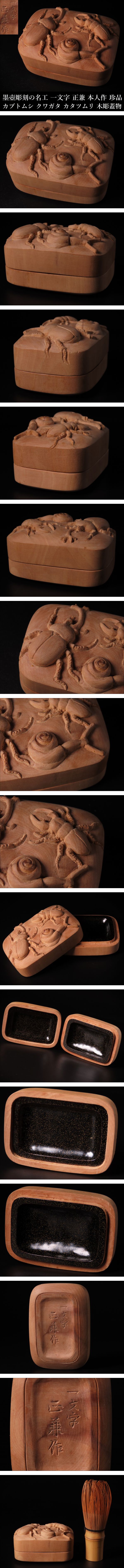 【ONE'S】墨壷彫刻の名工 一文字 正兼 本人作 珍品 カブトムシ クワガタ カタツムリ 木彫蓋物 古美術品 | |||