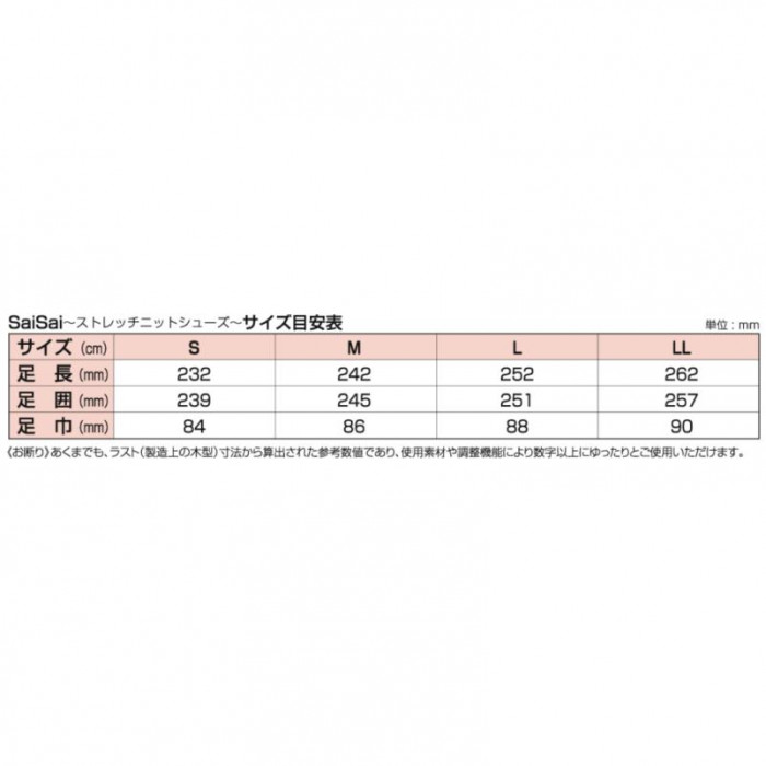 | 素材・材質 | 甲材:二重編みニット、合成皮革 底材:EVA、合成ゴム |
