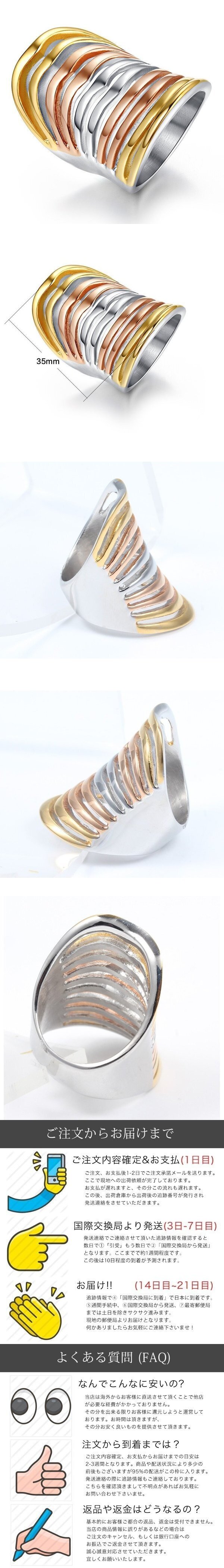 指輪 ステンレス リング ゴールド ピンク ホワイトシルバー 大きめ ゴージャス マルチカラー レイヤー おしゃれ 大人 收藏