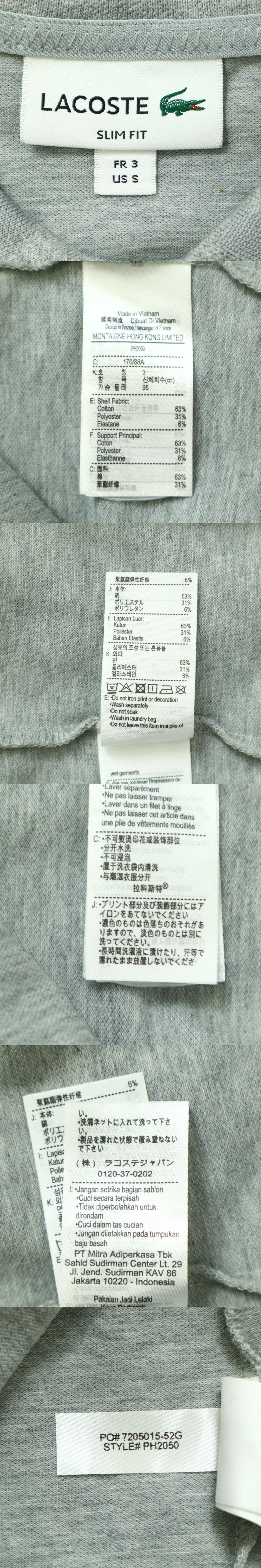 | 【美品】LACOSTE ラコステ 春夏 SLIM FIT ワニ ロゴ★ 半袖 ポロシャツ Sz.2 メンズ 灰 グレー C5T03958_4#A | |||