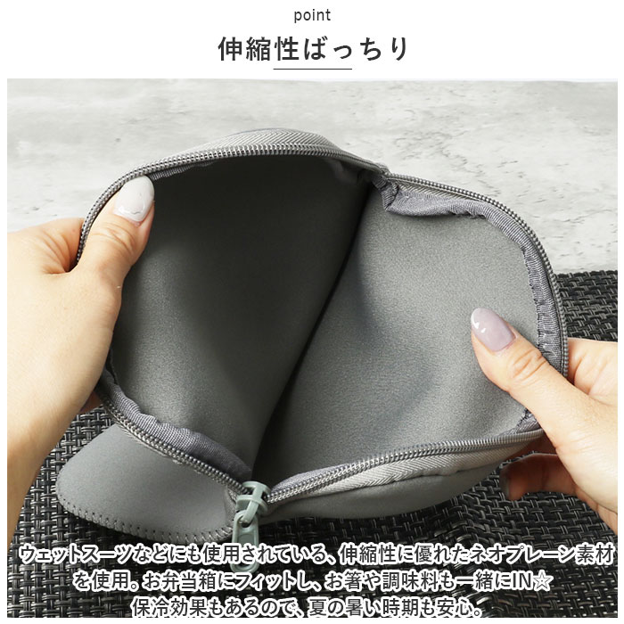 | 商品説明 | ・・立てて運べるお弁当箱がぴったり収まる!ランチの持ち運びに便利な「フードマンケース 500」が登場。 ・【ジャストフィットサイズ】 ・薄型弁当箱フードマン500(商品コード:fdmkokin500)や、立てて運べる薄型弁当箱Mee(商品コード:meefdm500)をぴったり収納できるケース。フードマンの薄さを損なわない、シンプル&スリム設計。(※お弁当箱は当店別ページにて販売中です。) ・【ファスナー開口】 ・開口部は開閉がスムーズなファスナー式。ファスナーを閉じれば、中身のこぼれ落ちをガード。 ・【伸縮性ばっちり】 ・ウェットスーツなどにも使用されている、伸縮性に優れたネオプレーン素材を使用。お弁当箱にフィットし、お箸や調味料も一緒にIN☆保冷効果もあるので、夏の暑い時期も安心。 ・【使い方をアレンジ】 ・お弁当箱ケースとしてはもちろん!280mlのペットボトルが2本収納できるサイズ感。レジャーやアウトドアシーンでも重宝。 ・【お手入れラクラク】 ・汚れが気になったら、自宅で手洗い可能。いつも清潔に保てるのが嬉しい! ・【シンプルなデザイン】 ・どなたでも持ち歩きやすい、ユニセックス仕様のデザイン&カラー。毎日のランチのお供にぴったり。 |
