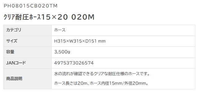 タカギ PH08015CB020TM クリア耐圧ホース15x20 020M TAKAGI 026574 收藏