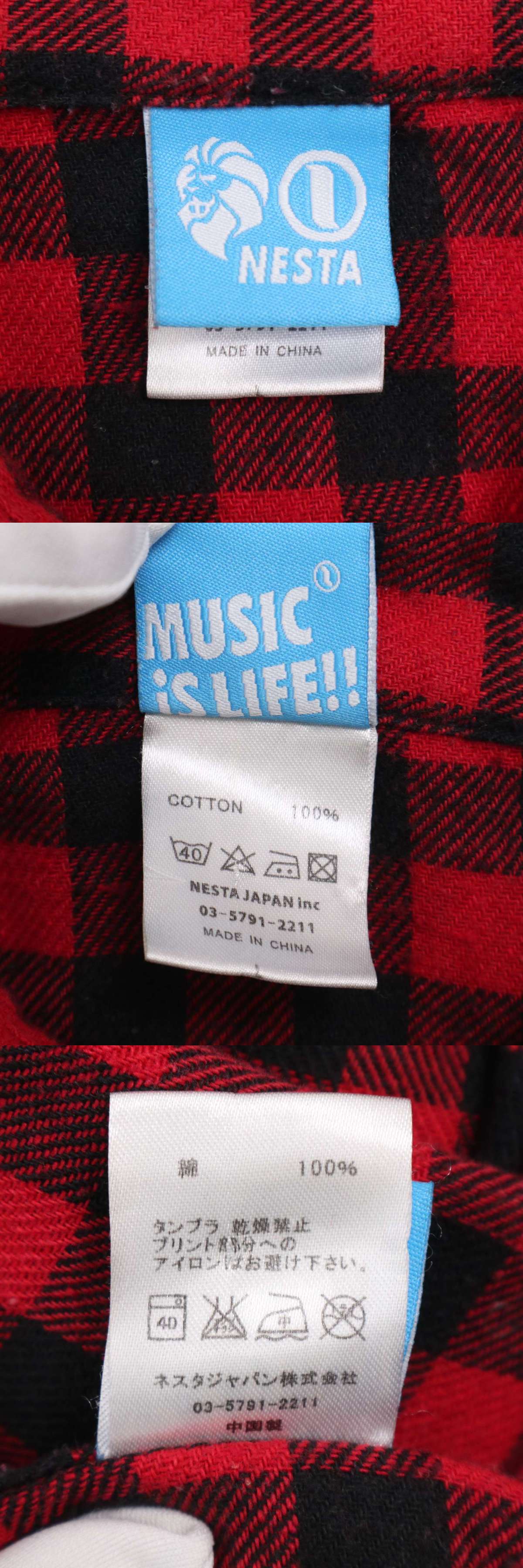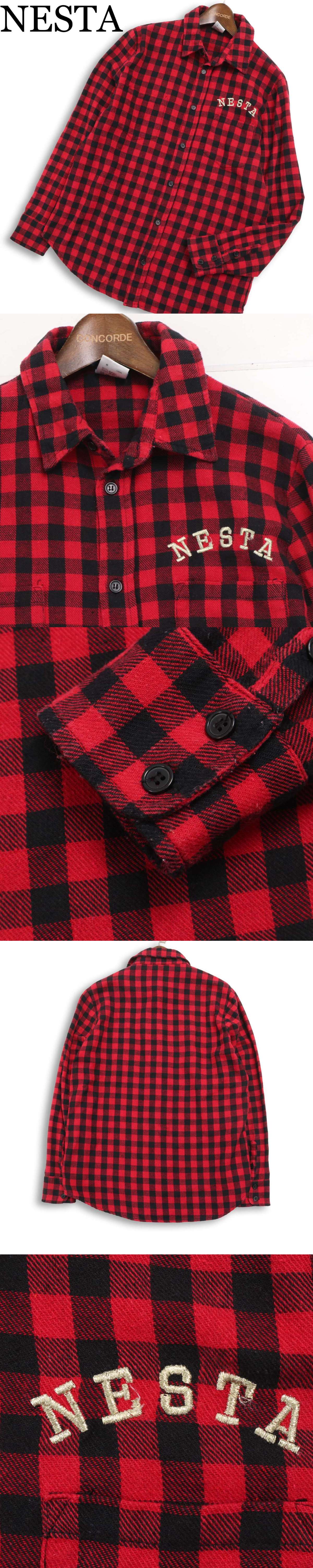 NESTA ネスタ 秋冬 ロゴ刺繍★ チェック フランネル 長袖 シャツ Sz.M〜L位 メンズ 收藏