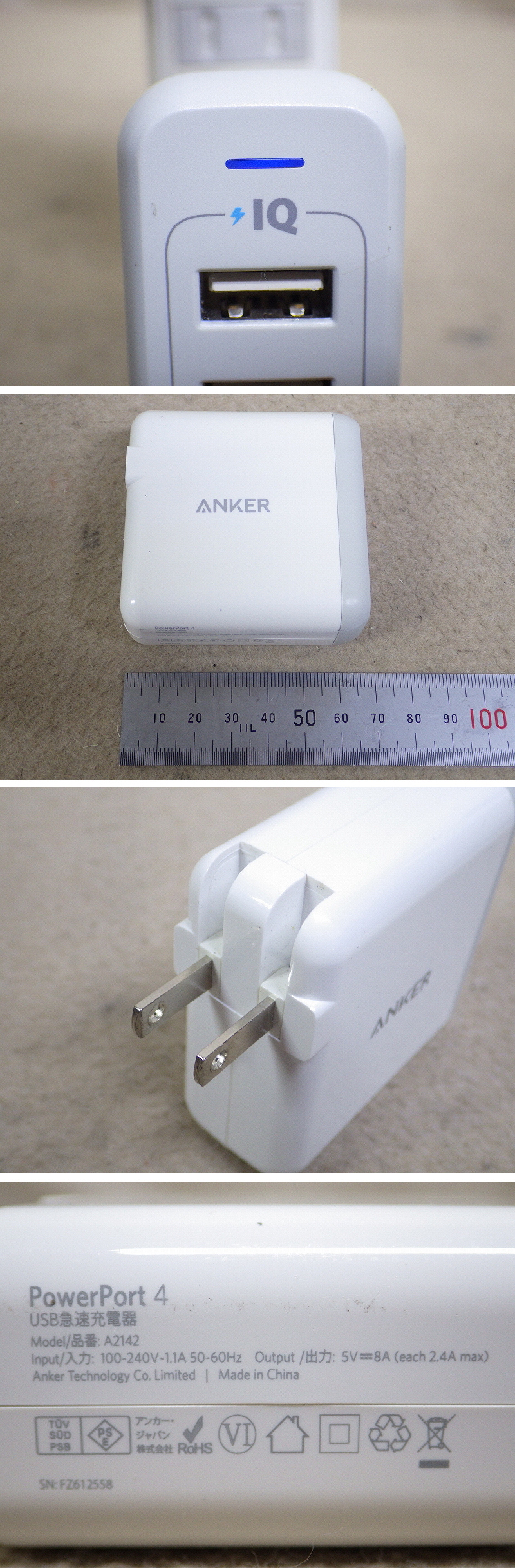 Kヲま2387 ANKER/アンカー USB急速充電器 4ポート 40W PowerPort4 A2142 モバイル用品 家電 PowerIQ 收藏