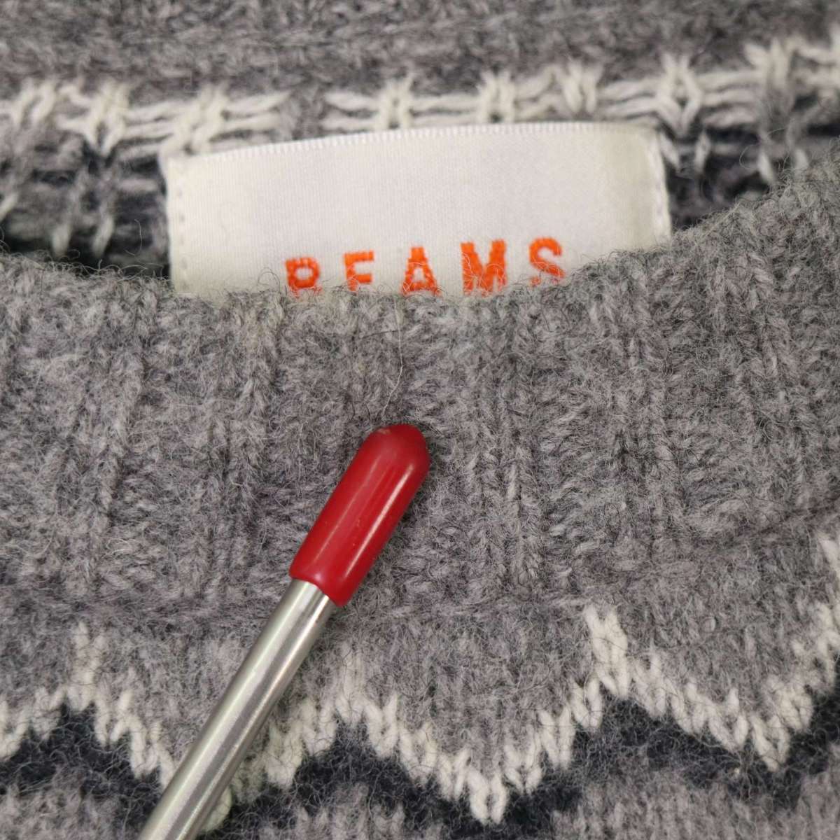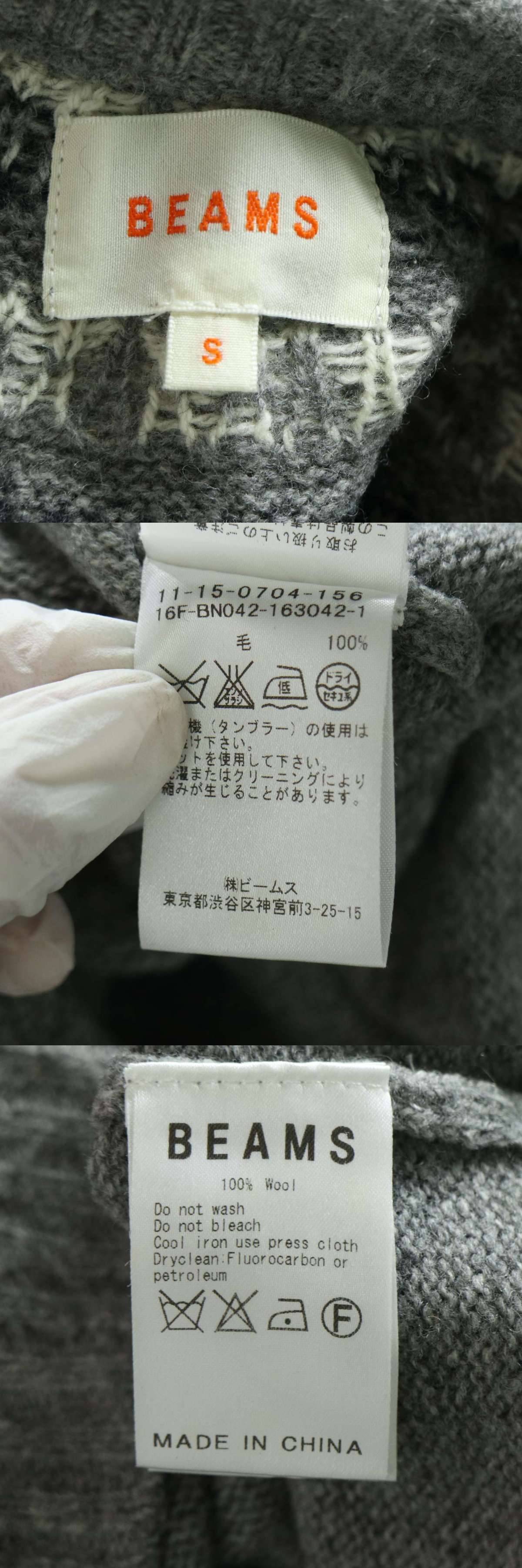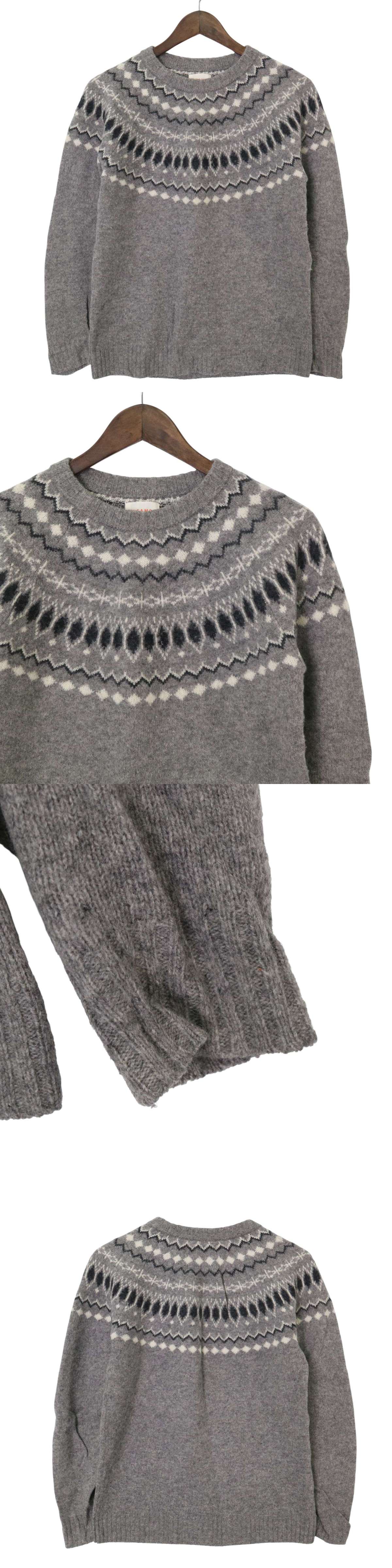 BEAMS ビームス 秋冬 フェアアイル★ ウール100% クルーネック ニット セーター Sz.S メンズ 灰 グレー 收藏