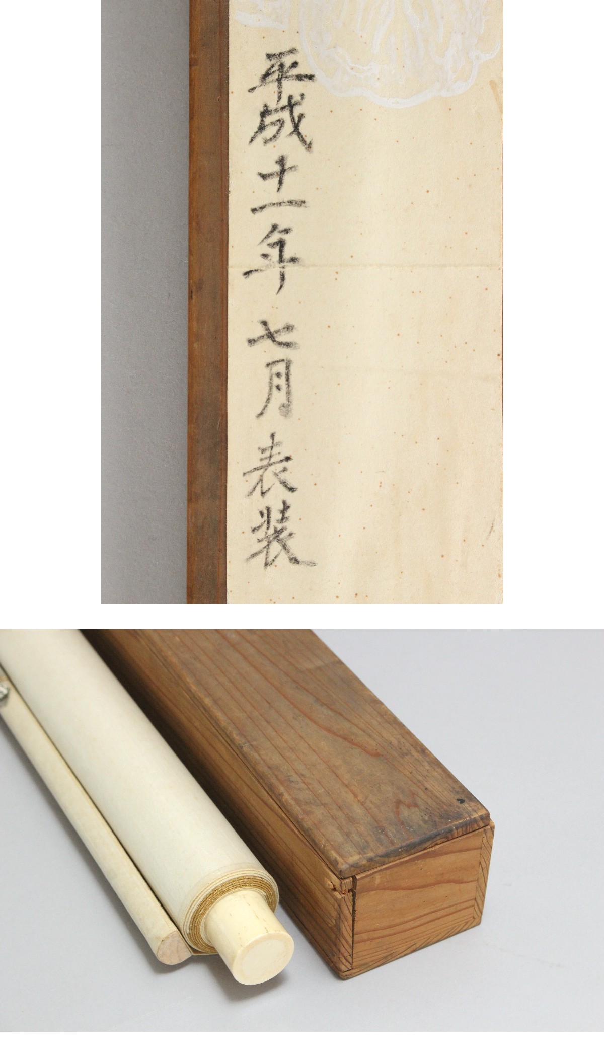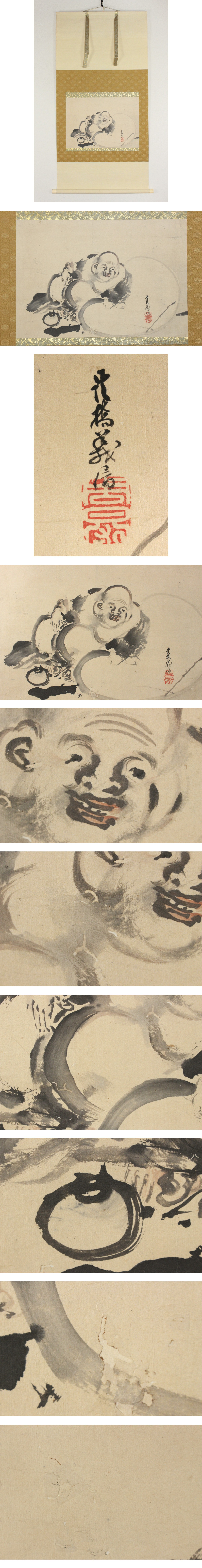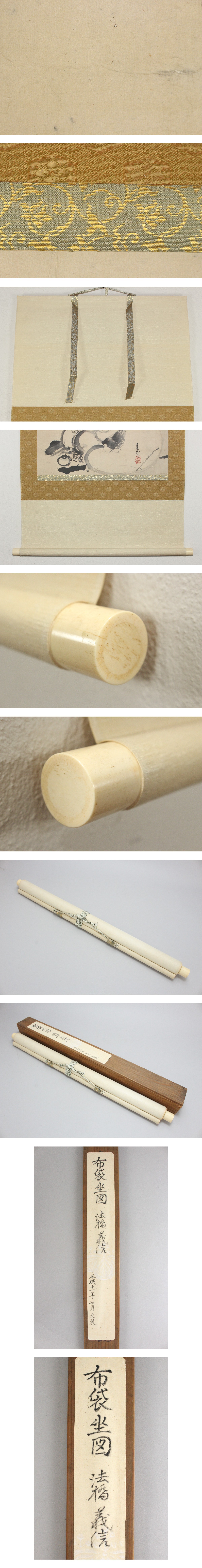[1749100]【真作】長安義信 法橋義信 布袋坐図 紙本 掛軸 合箱◆江戸後期/兵庫の人/佐野龍雲師事/土佐派/日本画/神仏画/古美術/時代/うぶ品 收藏