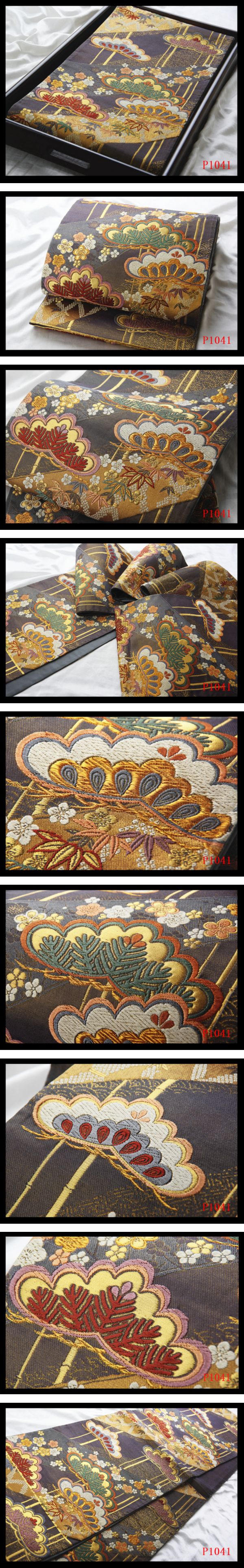 P1041厳選逸品 振袖可 松竹梅紋 濃鼠色地 華やぎの品格 正絹純金糸六通高級美術袋帯 ◇検◇簪着物名古屋帯帯締め 收藏