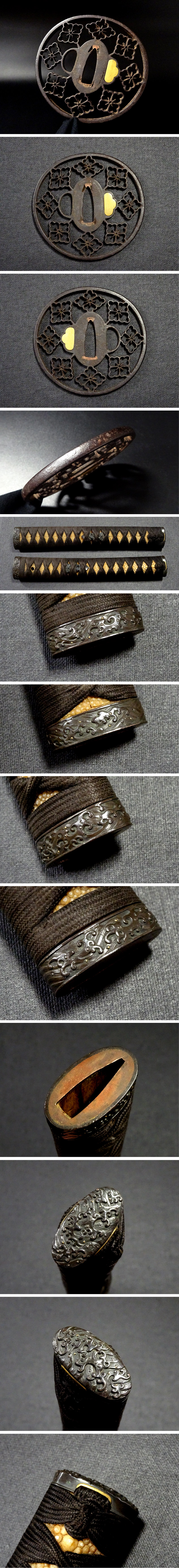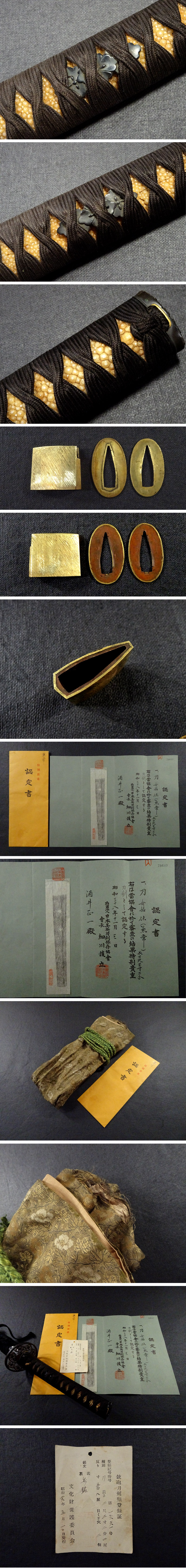 敬逢 秀逸 刀剣 特別貴重刀剣認定書 無銘 伝兼常 日本刀 刀 二尺三寸二分 直刃文 黒漆塗鞘鮫皮柄拵え 鉄地透鐔 赤銅地縁頭目貫 80 收藏