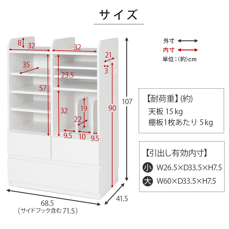 ランドセルラック RCC 大容量タイプ ホワイトウォッシュ 收藏