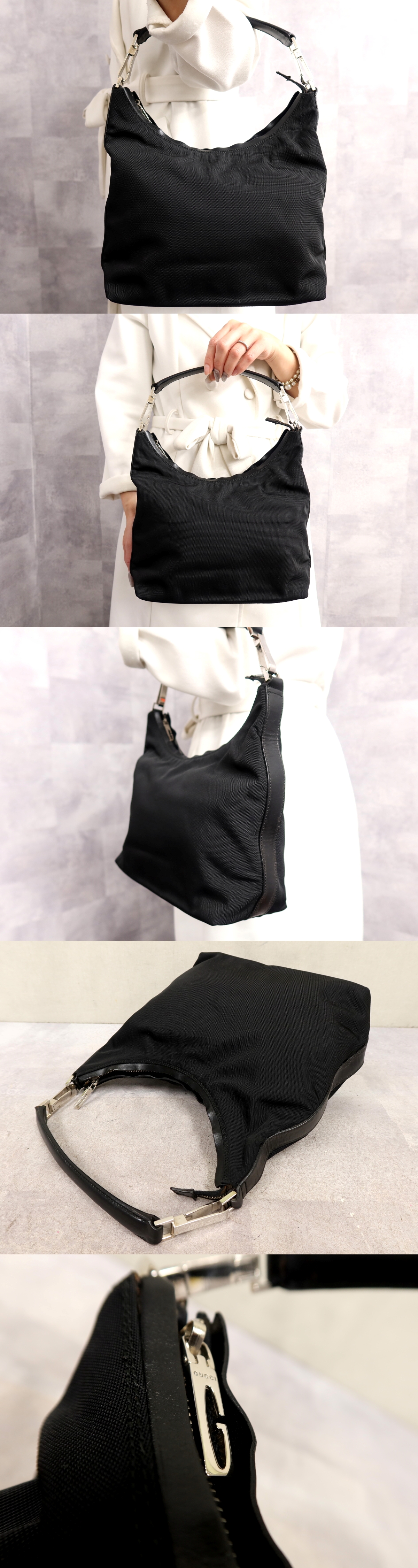 ●超美品●GUCCI グッチ●キャンバス カーフ レザー 本革●ショルダー バッグ●黒●シルバー金具●腕掛け●イタリア製●かばん●Js64914 收藏