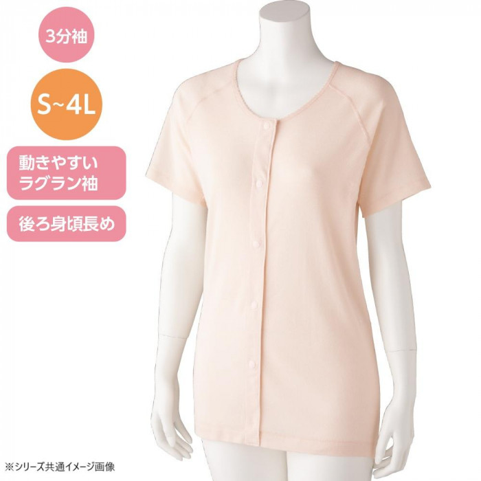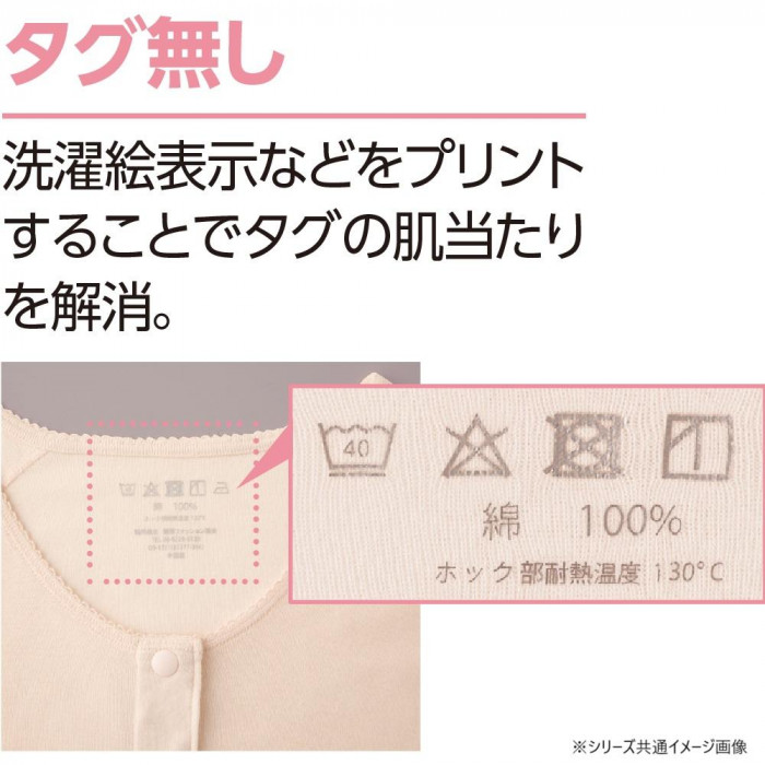 | 同色2枚組で着回しに便利。ホックボタンで着替えがしやすく、動きやすいラグラン仕様の3分袖と長めの後ろ身頃で快適に。タグなし・縫い目を外側にすることで肌当たりもやさしく、名前書きスペース付きで管理も安心。 |
