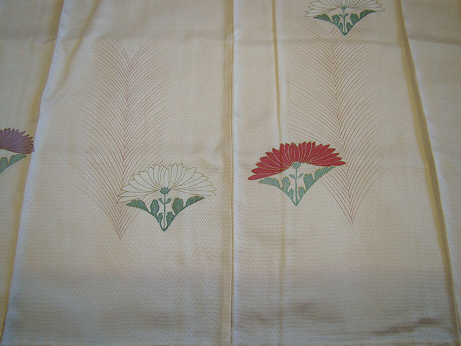| 商品説明 | こちらのお品は「袷」ですので10月から5月までお召頂ければと思います。 しなやかで柔らかな手触りの着心地良い重めの滑らかな綸子地の生地、 薄卵色地に地模様入りに花草柄の染柄に金彩加工仕立て、 気品に満ち溢れた彩りが正統派のお着物として一枚は欲しい逸品の素敵なお着物です。 八掛は煉瓦色(正絹)、幅広い年代の方にお召頂けます。 |