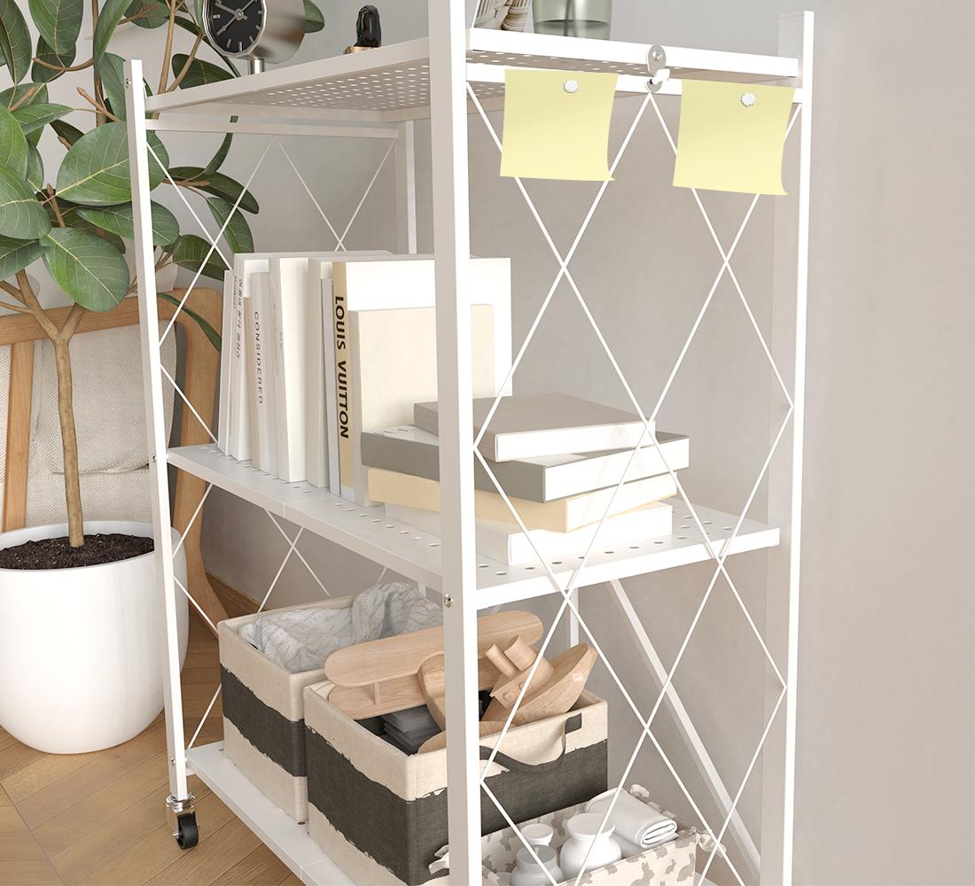 折り畳みラック 3段 組み立て簡単 スチールラック キャスター付き 収納ラック 折りたたみ ラック 棚 マルチラック レンジ台 収納ワゴ 收藏