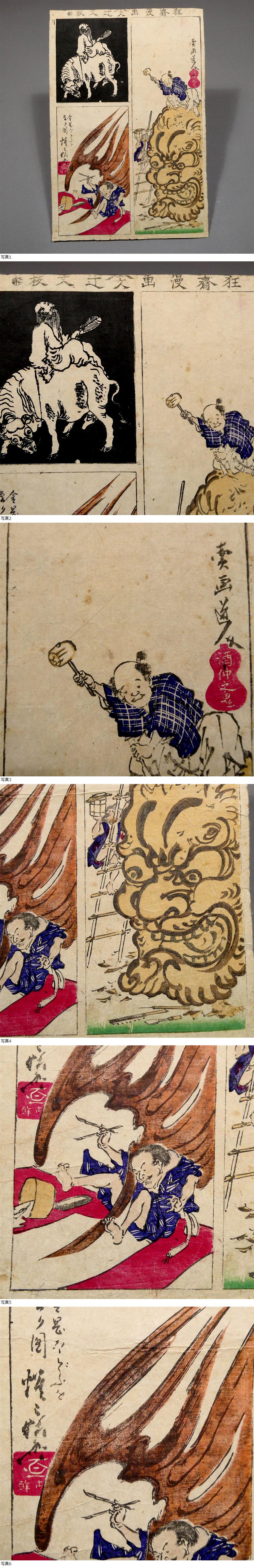河鍋暁斎◆江戸時代 幕末 木板浮世絵「狂斎漫画」◆“売画道人” 惺々狂斎◆飄々と 滑稽に 暁斎の魅力あふれる大判錦絵■国芳 芳年 北斎 20 收藏