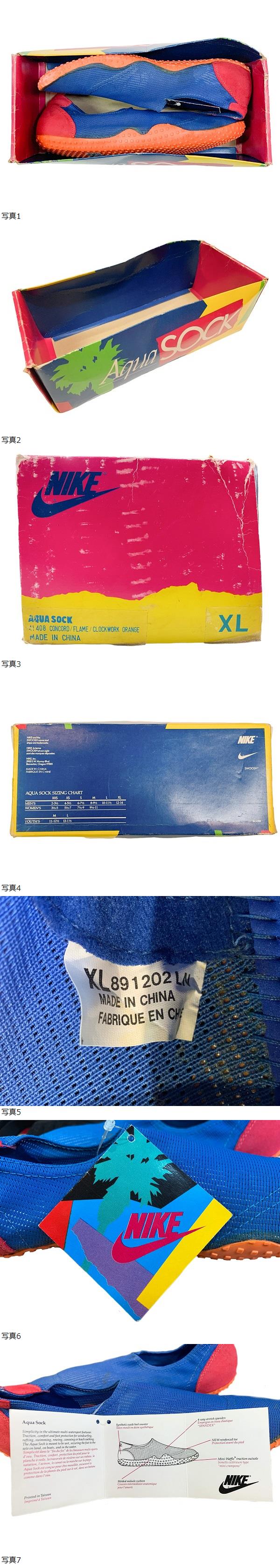 箱付きデッドストック ビンテージ レア NIKE ナイキ AQUA SOCK アクアソック 1989年製 ブルー/レッド/オレンジ size XL ACG エアモック 收藏