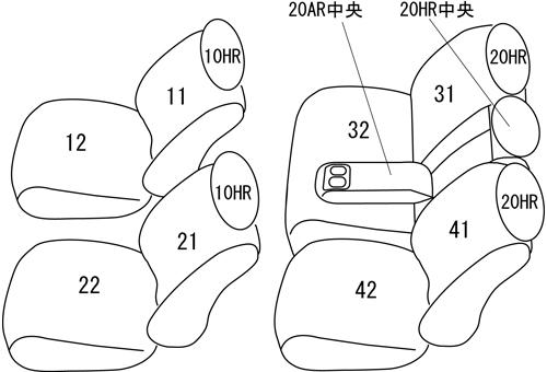 | シートパターン | ヘッドレスト総数:5 1列目肘掛:0 2列目肘掛:1 3列目肘掛:- サイドエアバッグ:〇 |