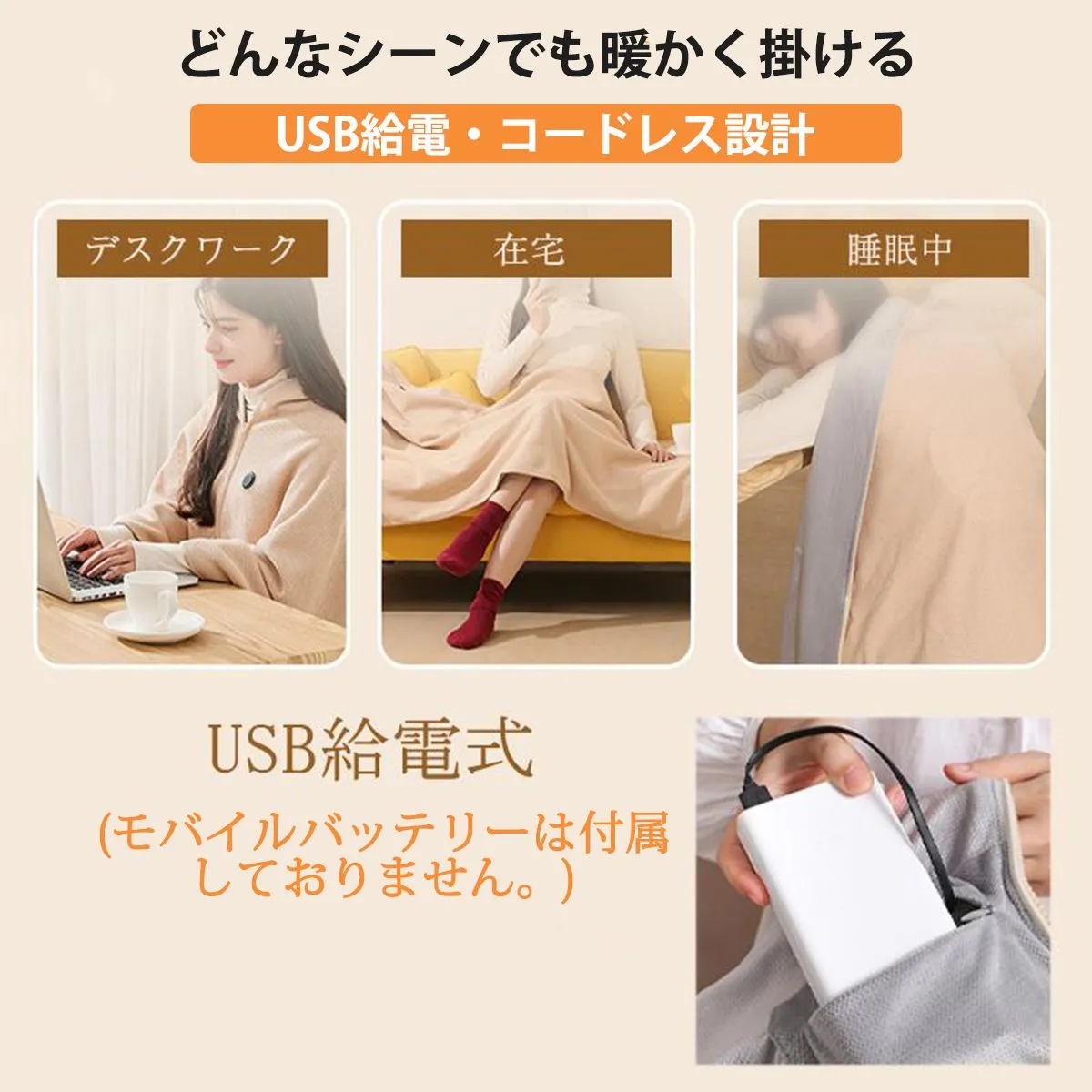 電気毛布 着るブランケット 電気ひざ掛け USB給電 150×80cm 洗える ワッフル生地 ニット素材 掛け敷き兼用 ヒーターブランケット S00203 收藏