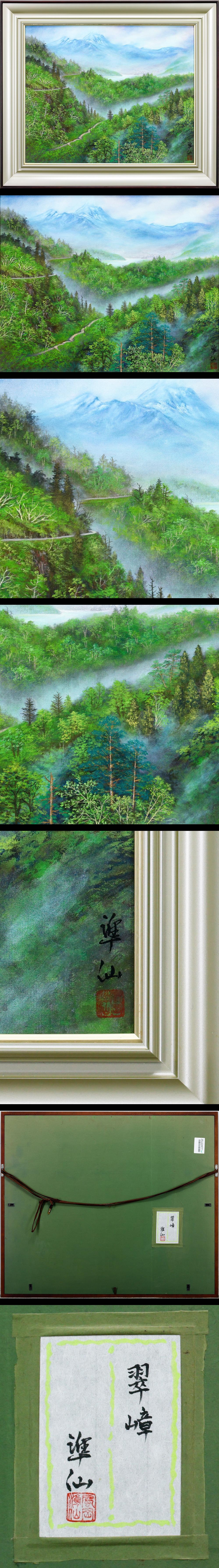 【真作】【WISH】風岡準仙「翠嶂」日本画 15号 大作 金泥仕様 絹本 共シール 靄に包まれる翠緑の山嶂 〇涼雅会所属 #25122477 收藏