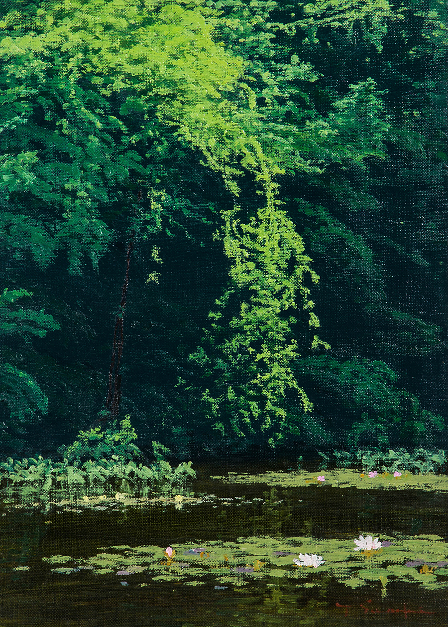 【1on1】真作 佐々木友 『すいれん池の藤』 油彩 キャンバス 4号 額装 / 新日本美術協会員 師:中尾不二夫 收藏