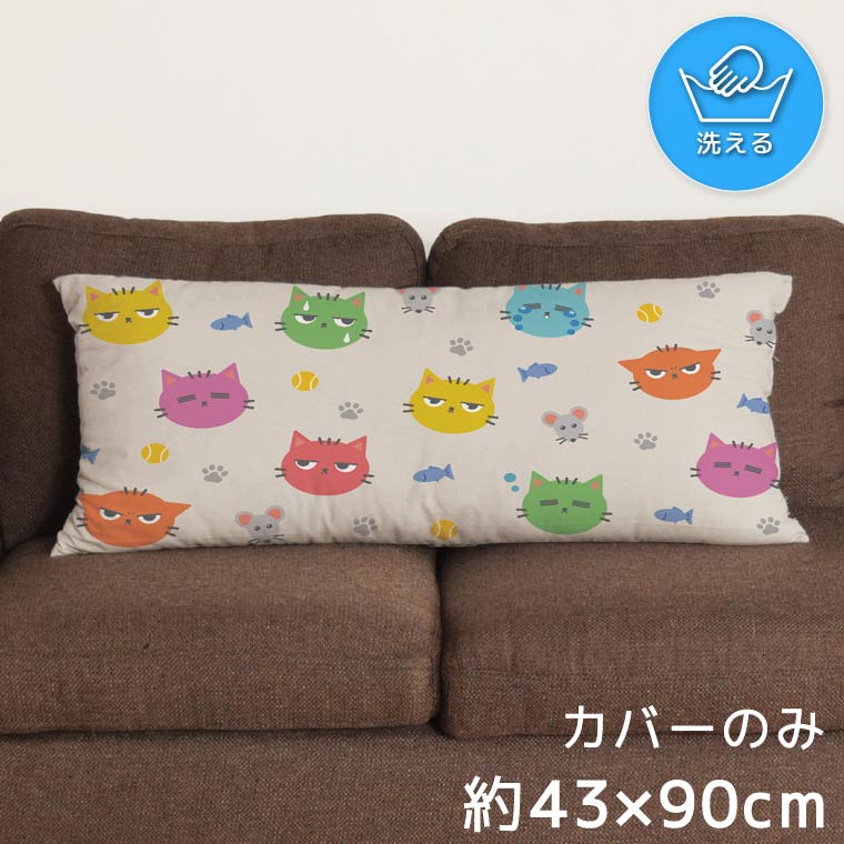 クッションカバー ロングクッション 約43×90cm 抱き枕 洗える カバーのみ 転写プリント イラスト CSC-E176 ねこ カラフル ネズミ アニマル 收藏