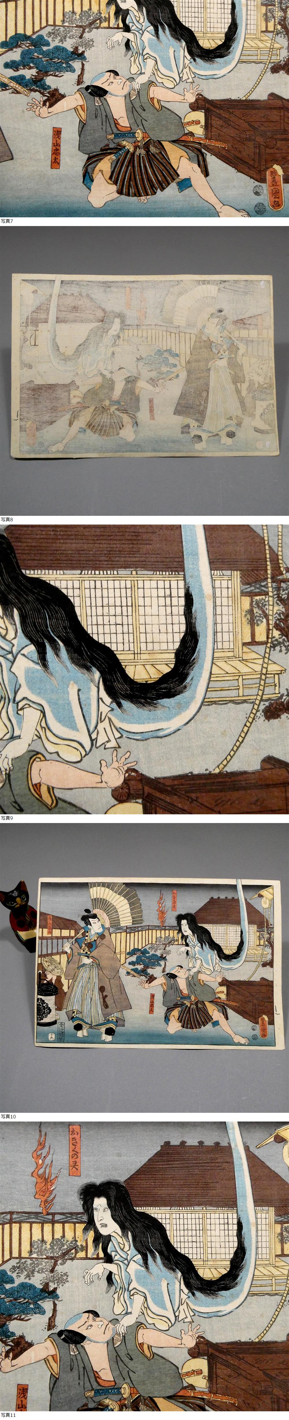 歌川国貞◆幽霊画 妖怪画◆木版浮世絵 お菊亡霊◆番町皿屋敷 豊国 怪談絵 幽霊 お化け 錦絵 歌舞伎 実成金菊月 骨董 歴史資料◆北斎 国芳44 收藏