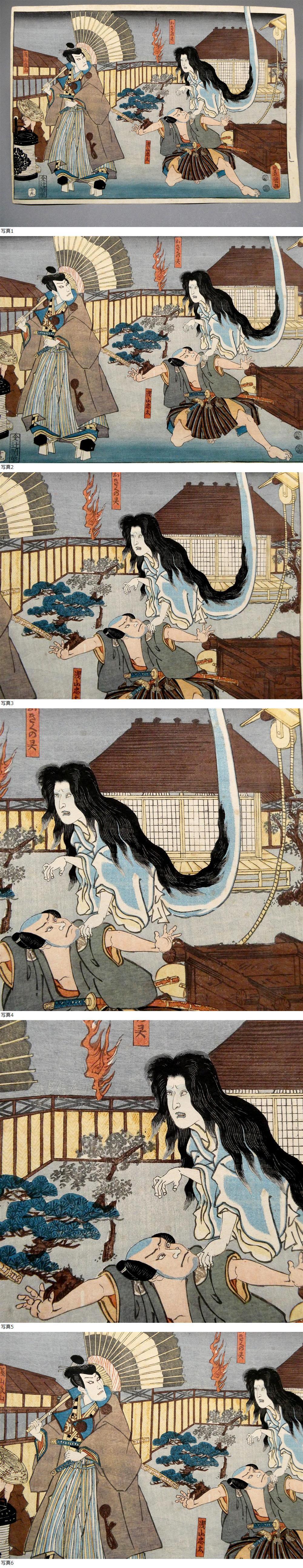 歌川国貞◆幽霊画 妖怪画◆木版浮世絵 お菊亡霊◆番町皿屋敷 豊国 怪談絵 幽霊 お化け 錦絵 歌舞伎 実成金菊月 骨董 歴史資料◆北斎 国芳44