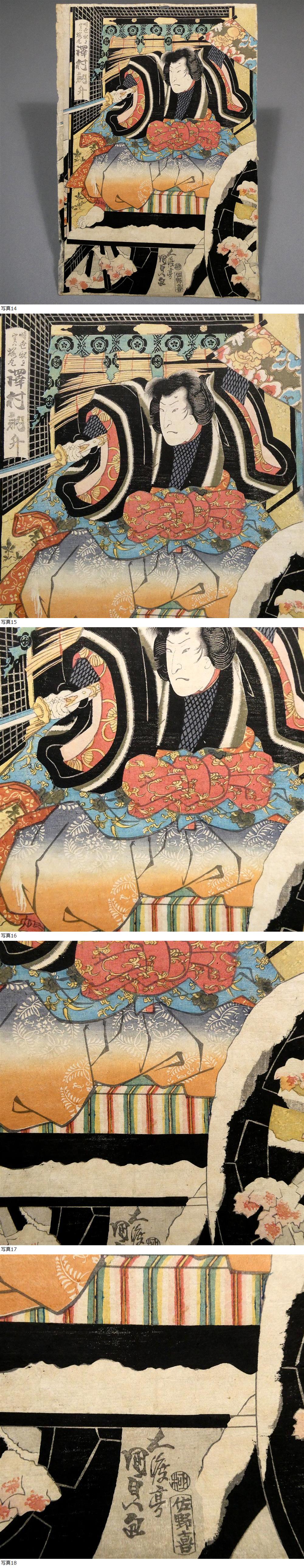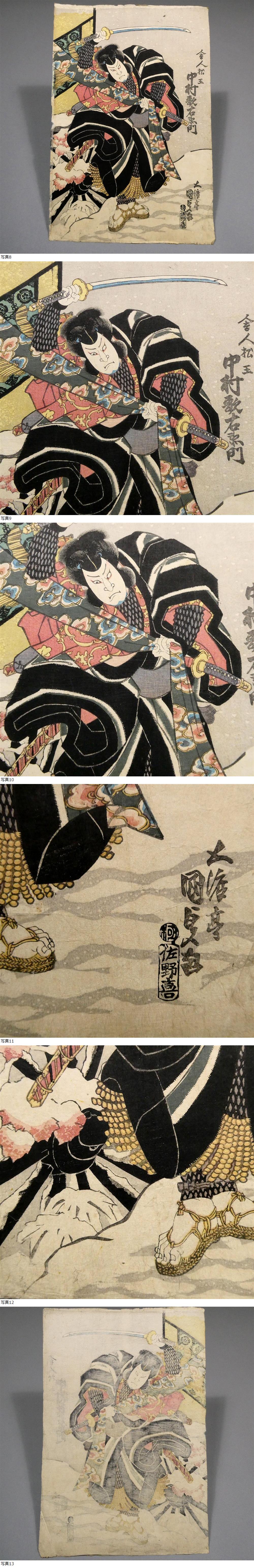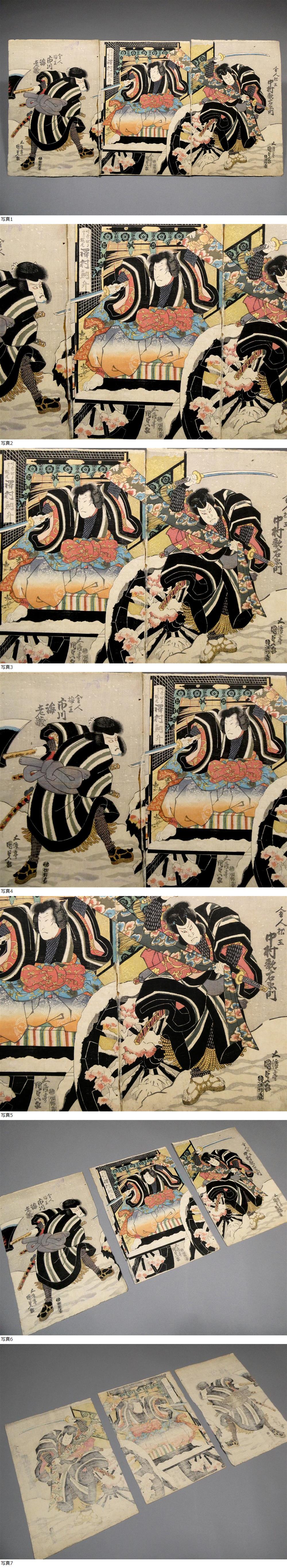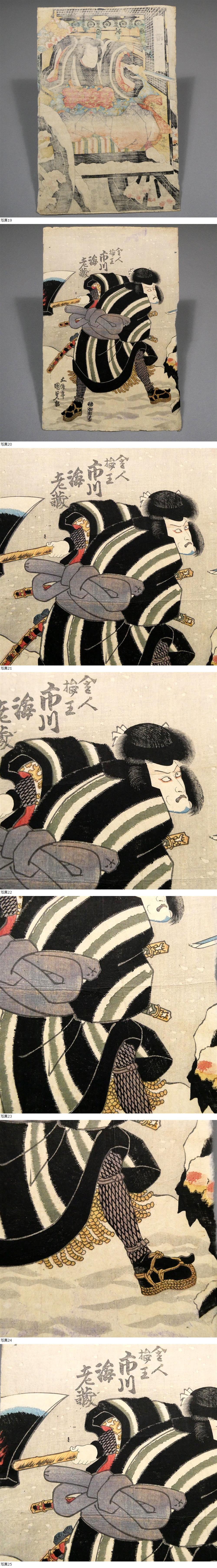 五渡亭国貞◆雪中 役者絵3枚続揃い◆江戸時代 木版浮世絵◆舎人松王 中村歌右衛門 実ハ櫻丸 澤村訥升 舎人梅王 市川海老蔵■豊国三代 32 收藏