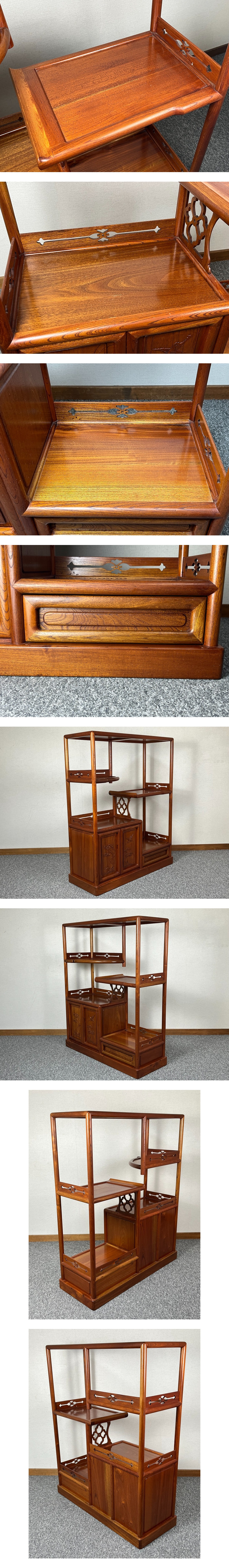 A996 鶴 松 竹 透かし彫 段違い 欅無垢 茶棚◇飾り棚 茶箪笥 煎茶道具 違い棚 飾棚 飾り棚 和家具 茶道具 レトロ アンティーク 收藏