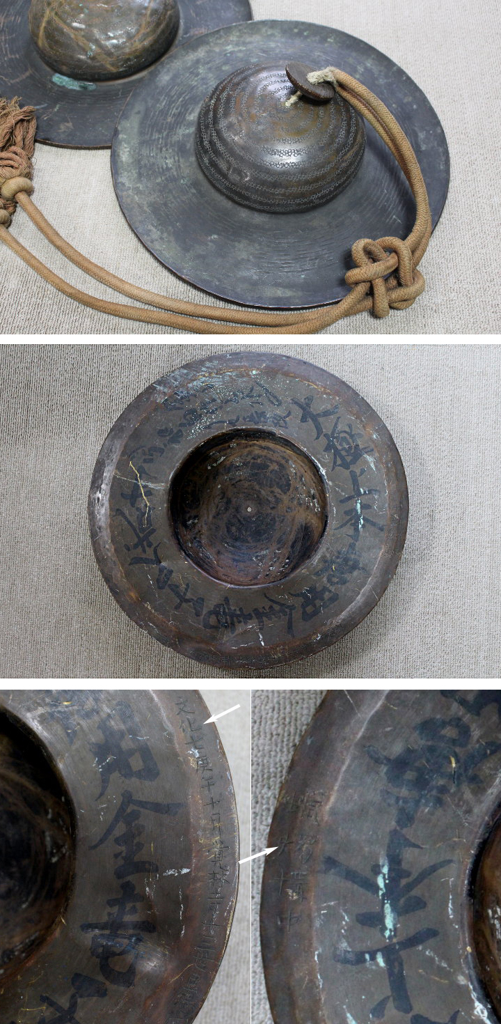 時代 妙鉢(鐃祓) 仏教美術 法具 仏具 打ち出し 文化七庚午十月覚林寺~の刻有 大極上本唐用金亀子尺貳寸~の墨書有 收藏