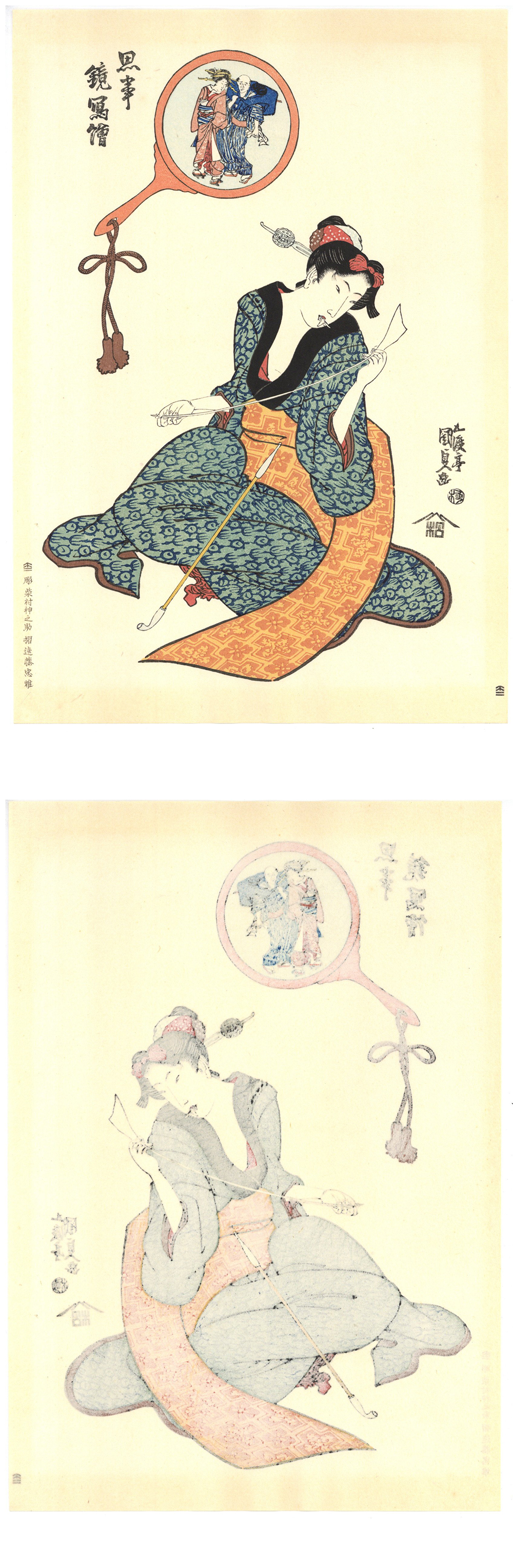復刻木版画◆歌川国貞 手摺木版画 「思事鏡写絵(こより)」浮世絵 大判 美人画 收藏