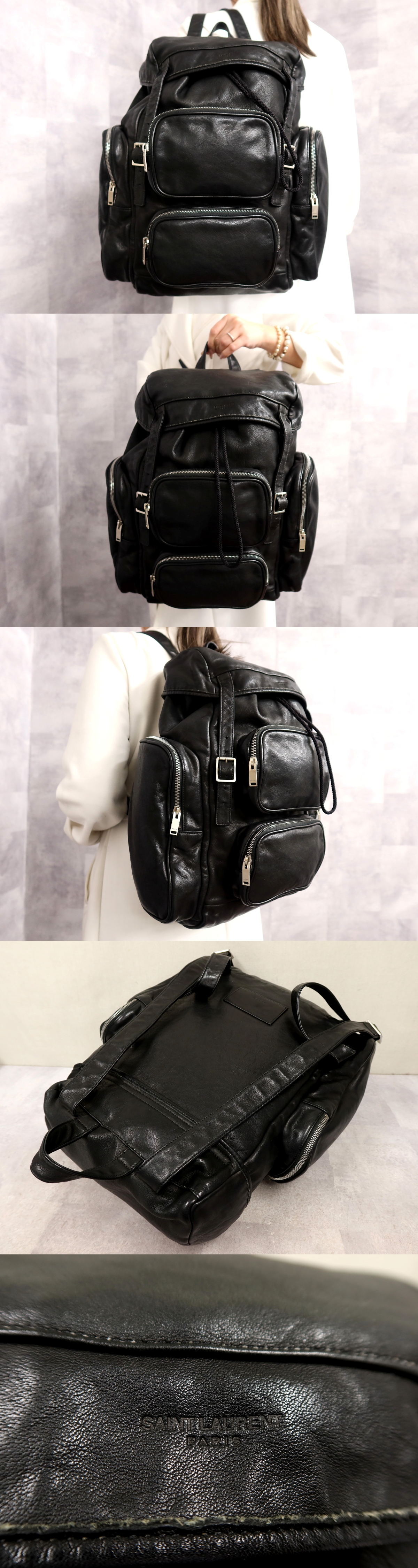 ●超美品●SAINT LAURENT サンローラン●メンズ●マルチポケット●カーフ レザー 本革●バックパック●黒●シルバー金具●A4 収納●Js65591 收藏