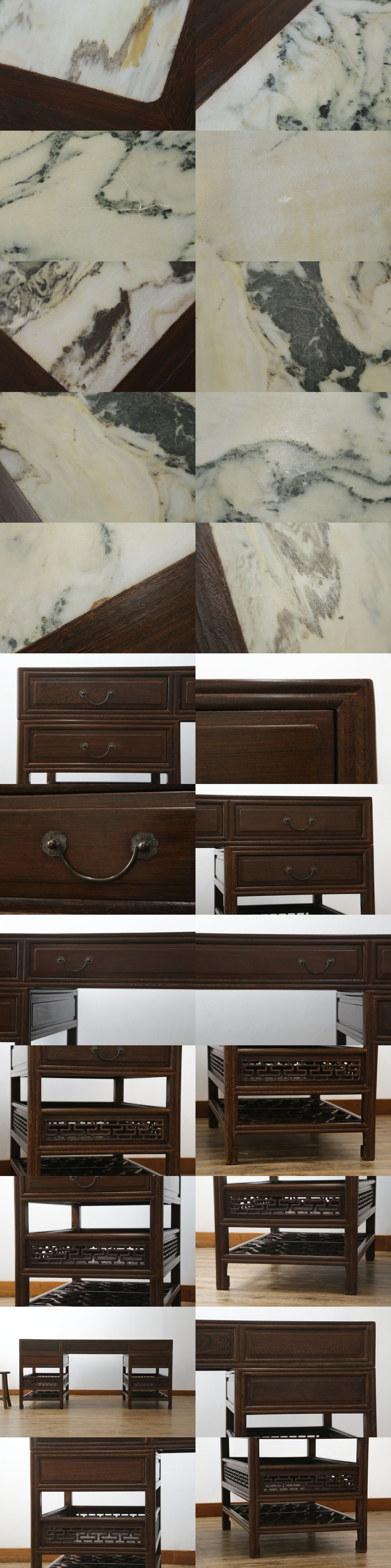 R-057848 中国アンティーク 最高級 鉄刀木(タガヤサン) 天板大理石 組み立て式両袖机(ニーホールデスク、ワークデスク、在宅用、在宅用) 收藏