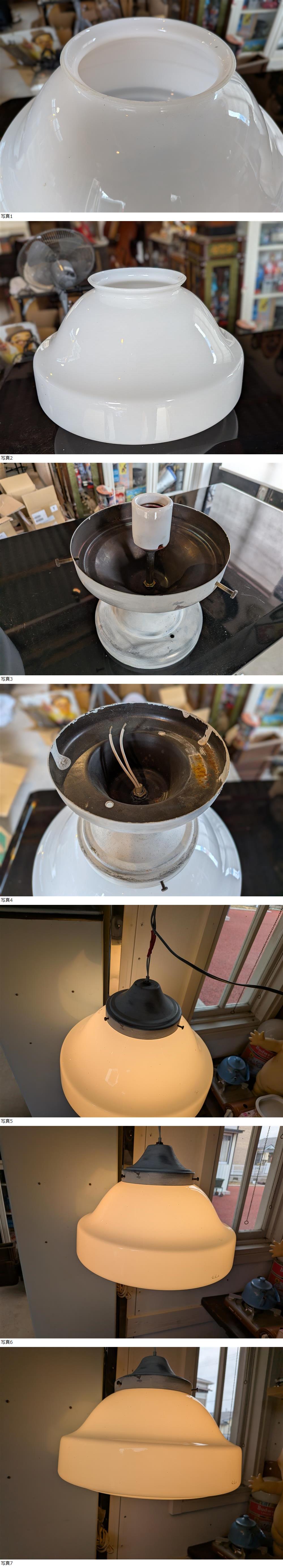 天井照明 ミルクガラス 乳白色ガラス コマ型 大型 吊り下げペンダントライト 直径約35cm レトロ ふるいガラス電笠 收藏